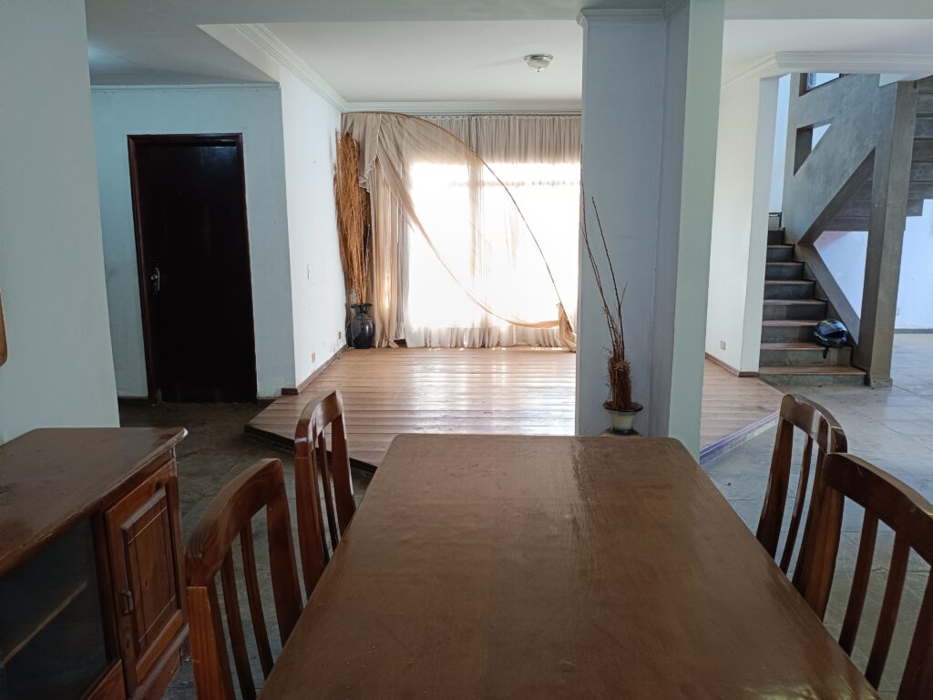 Piso inferior: garagem coberta para 2 carros coberto e mais 4 descobertos; 2 salas de estar; sala de jantar; escritório; lavabo; cozinha; dispensa; lavanderia/área de serviço; 1 quarto com wc; 1 canil